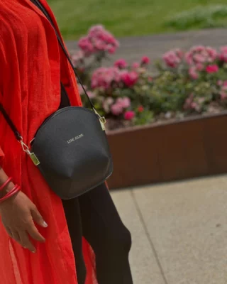 Fabriqué en Espagne dans un cuir lisse d’une qualité exceptionnelle, il se distingue par sa silhouette sculptée, son rabat embossé du logo Fleur Lyne Juline, et sa chaîne dorée lumineuse.